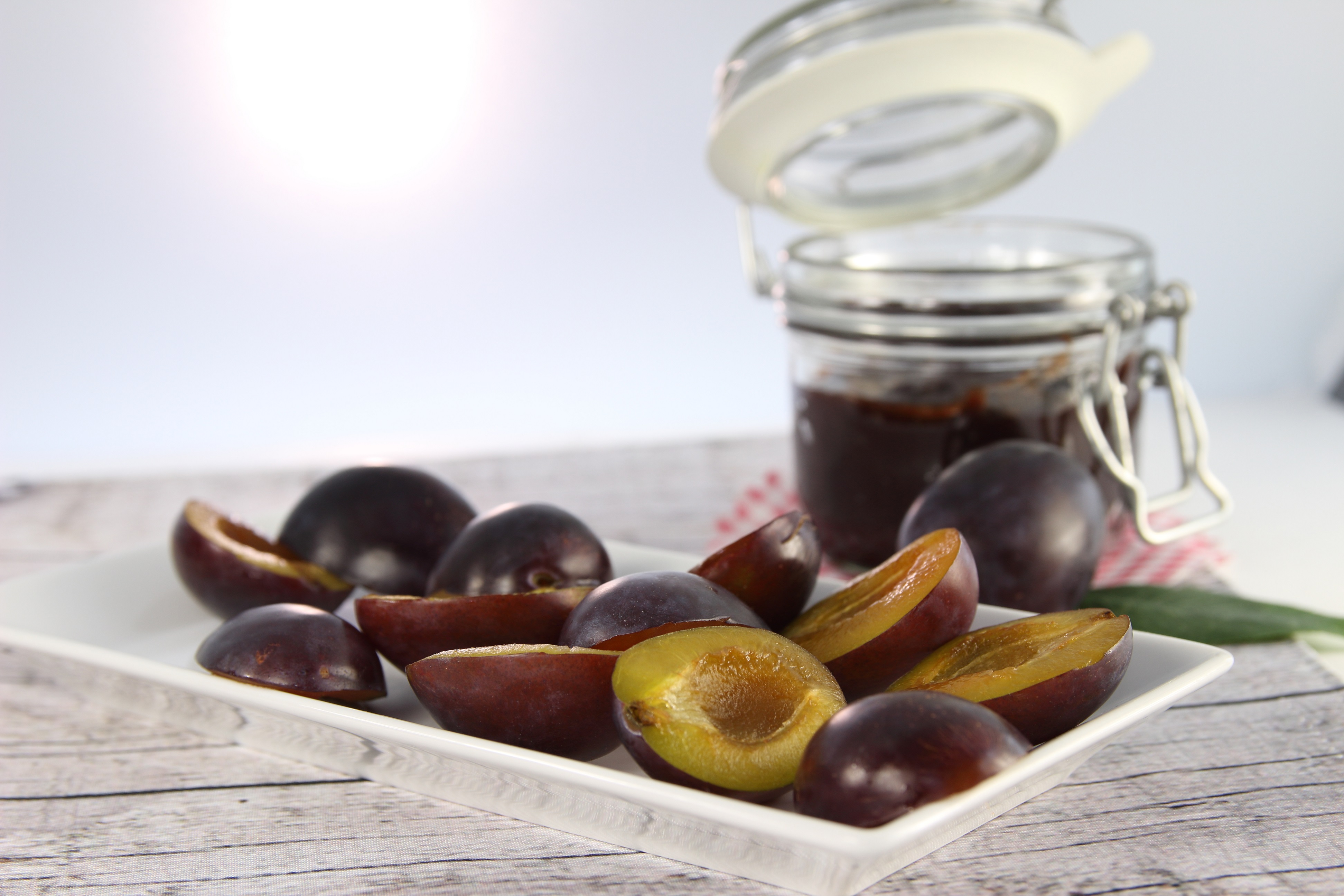 Pflaumen in Hälften