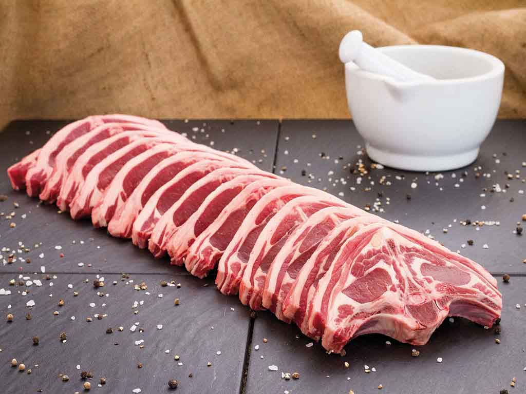 Lamm-Rücken m.Knochen in Scheiben, halbiert, reformed 25mm, ca. 1,4 kg